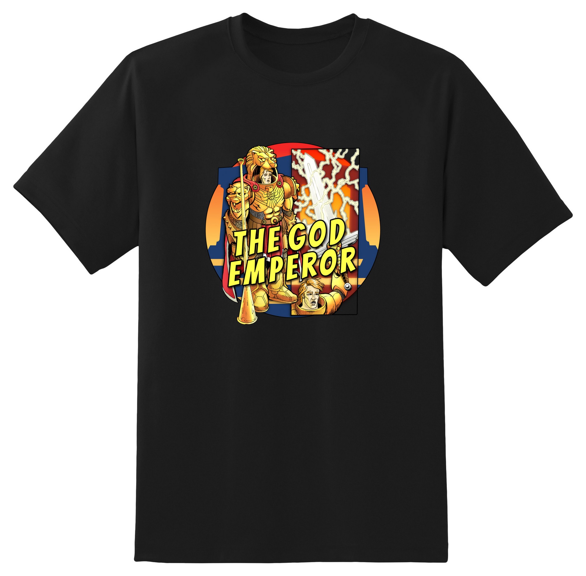 The God Emperor, a.k.a. Eric Horne—here depicted in the flower of relative youth—is found
